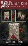 Darker Version (Cardinal Kin II) - Weeks Dye Works in Mascara, Crimson, and Parchment; Classic Colorworks in Pine Needles; DMC in 840, 935, 3021, 3858, and 3859.