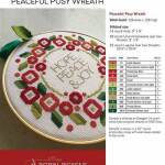 Peaceful Posy Wreath by Robin Pickens is a festive cross-stitch pattern inspired by her quilt design Ring Around the Posies. This design features a circular arrangement of stylized red flowers and green leaves, with the optional phrase "Hope Peace & Joy" in the center, making it a perfect addition to your holiday décor.